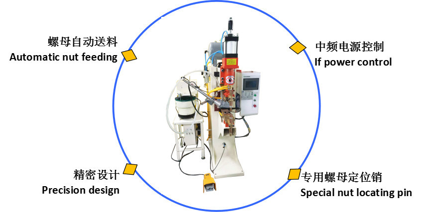 এটি স্বয়ংক্রিয় বাদাম খাওয়ানো এবং লোহার শীট বা লোহার পাইপে স্পট ওয়েল্ডিংয়ের জন্য ব্যবহৃত হয়, যা দক্ষ, সময়-সঞ্চয় এবং শ্রম-সাশ্রয়।